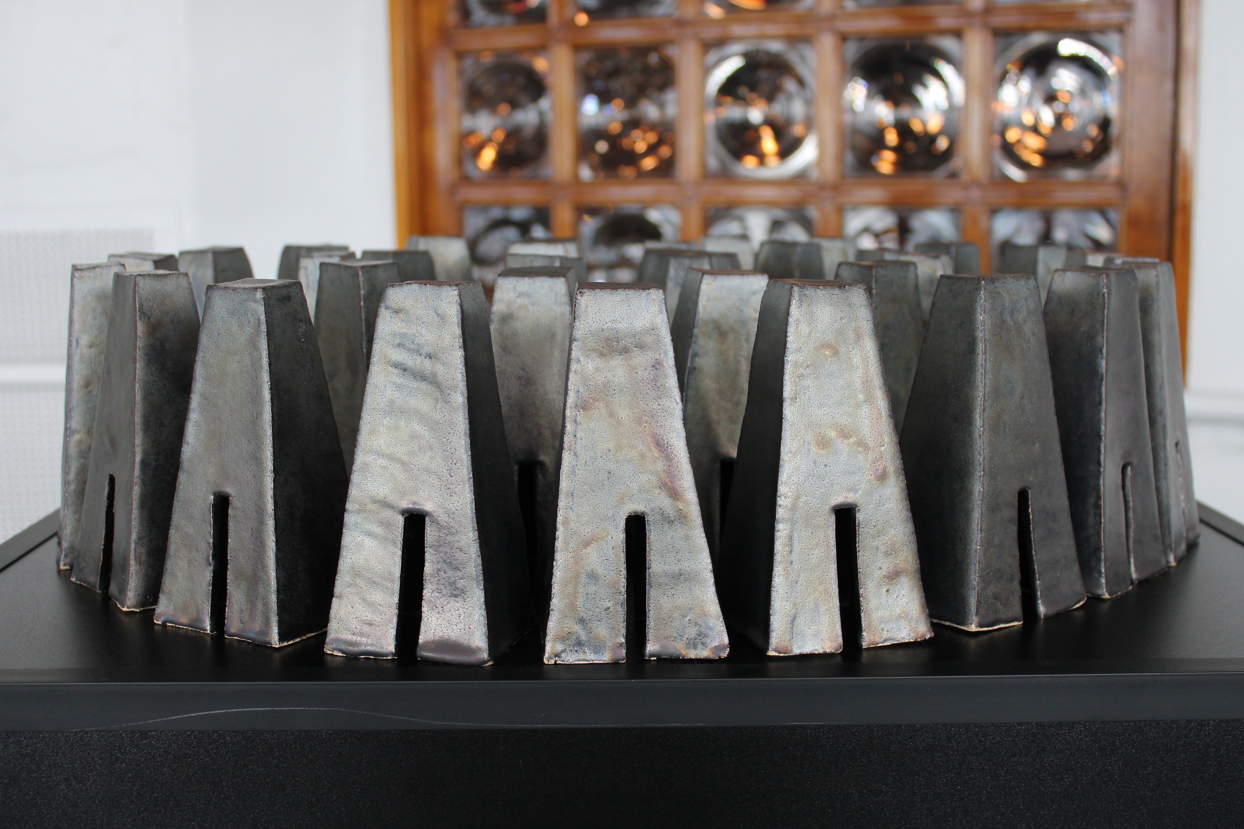 Model for a Monument is a continuation of an ongoing project, an exploration of reviving the tradition of archaic monuments, which incorporate elements of the transmundane, as opposed to the purely functional pragmatism of architecture today. Fascinated by ancient formations, sacred geometry and symbolism, the artist reflects on the meaning of magical objects in our daily life and how much they influence the decisions we make - or the other way around.