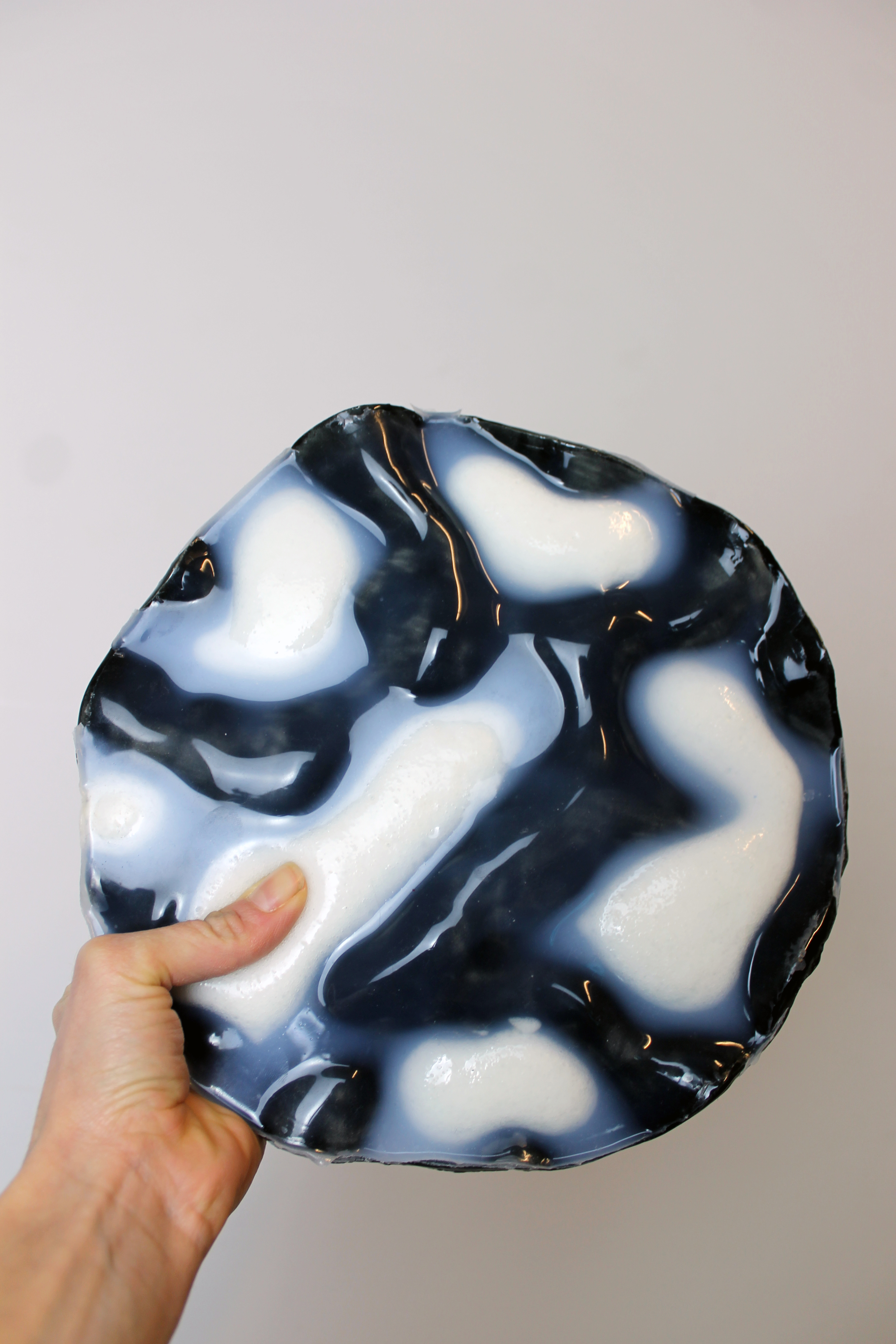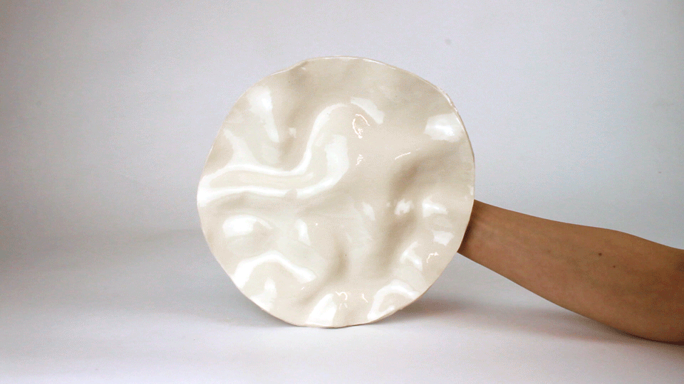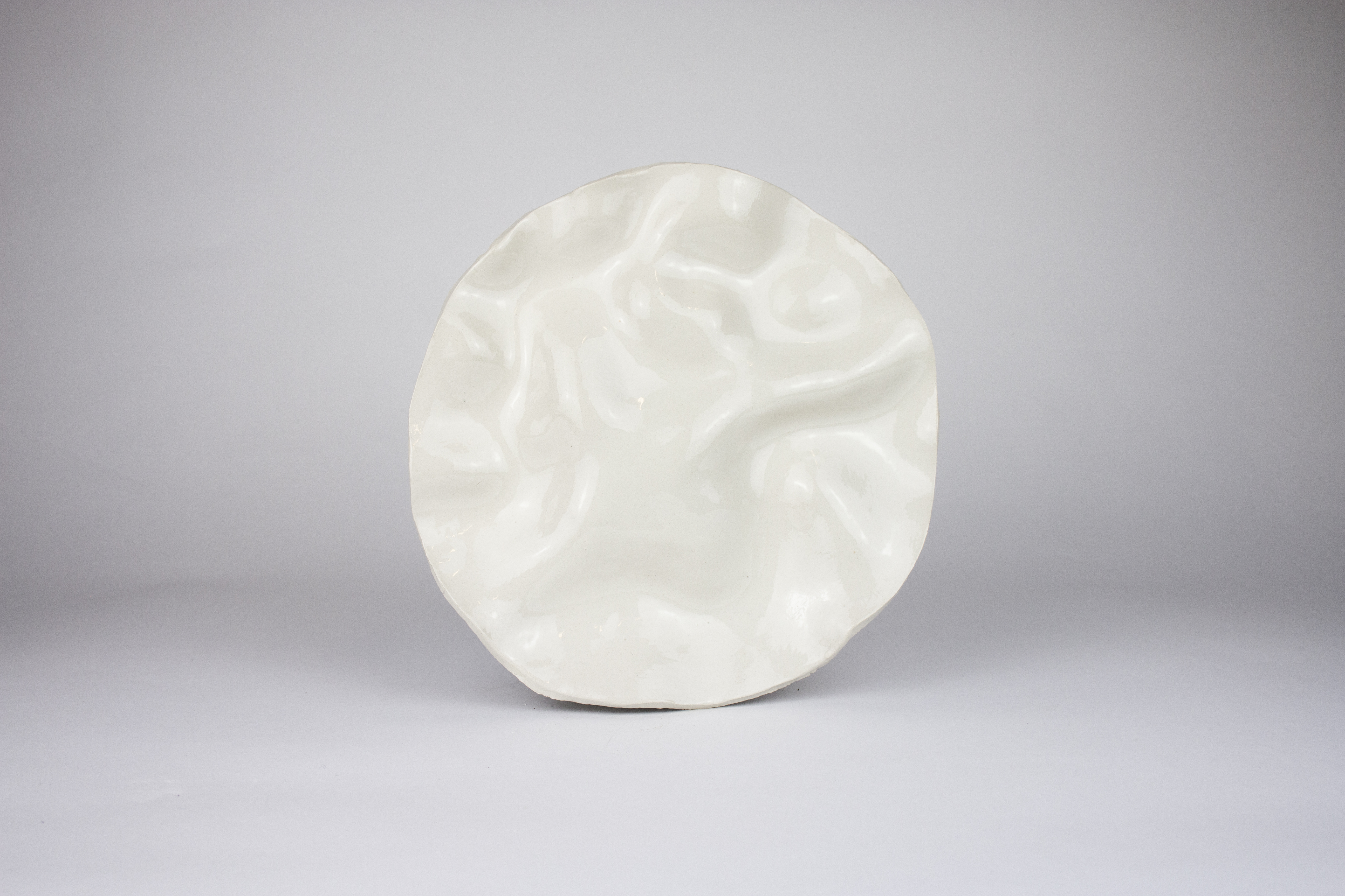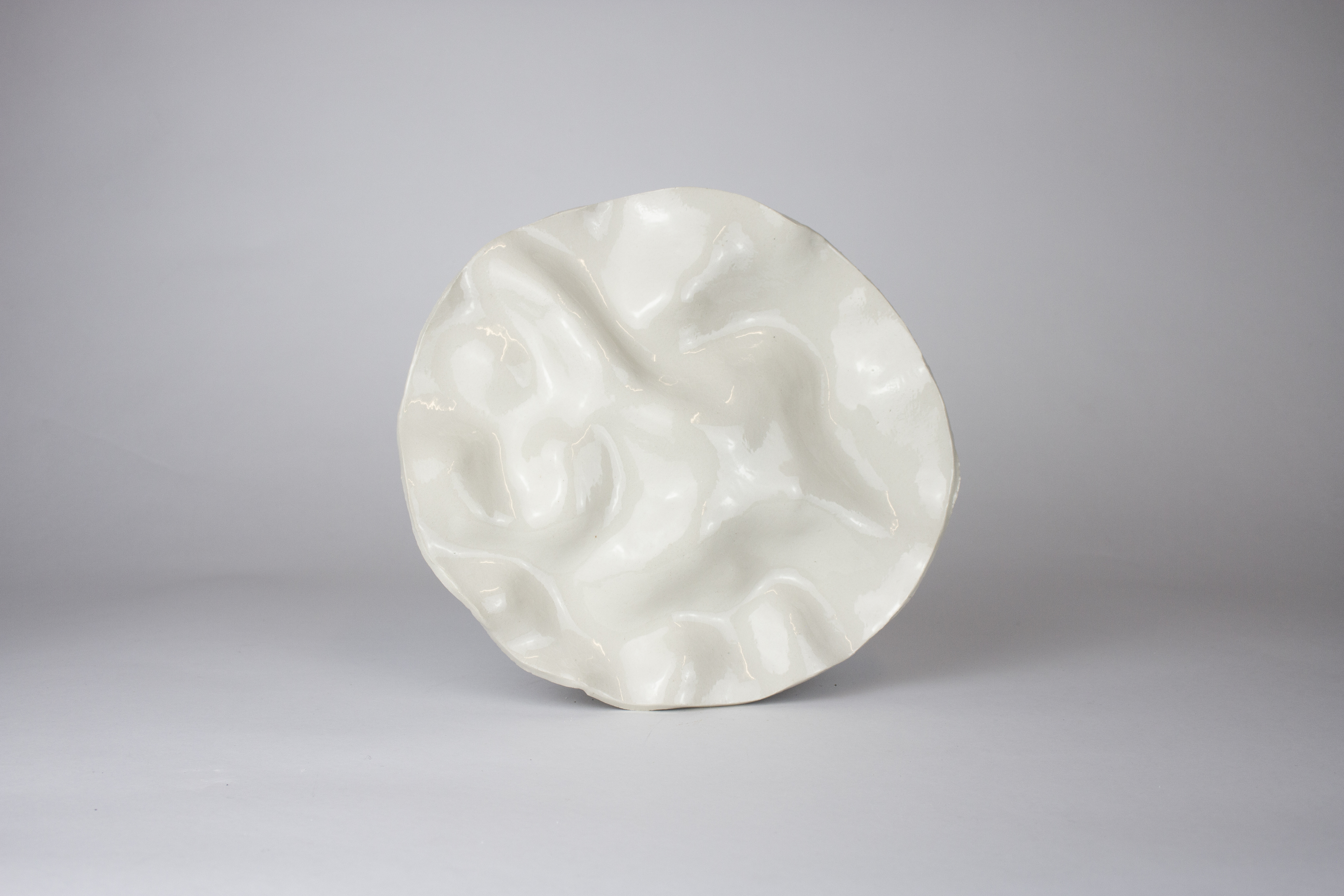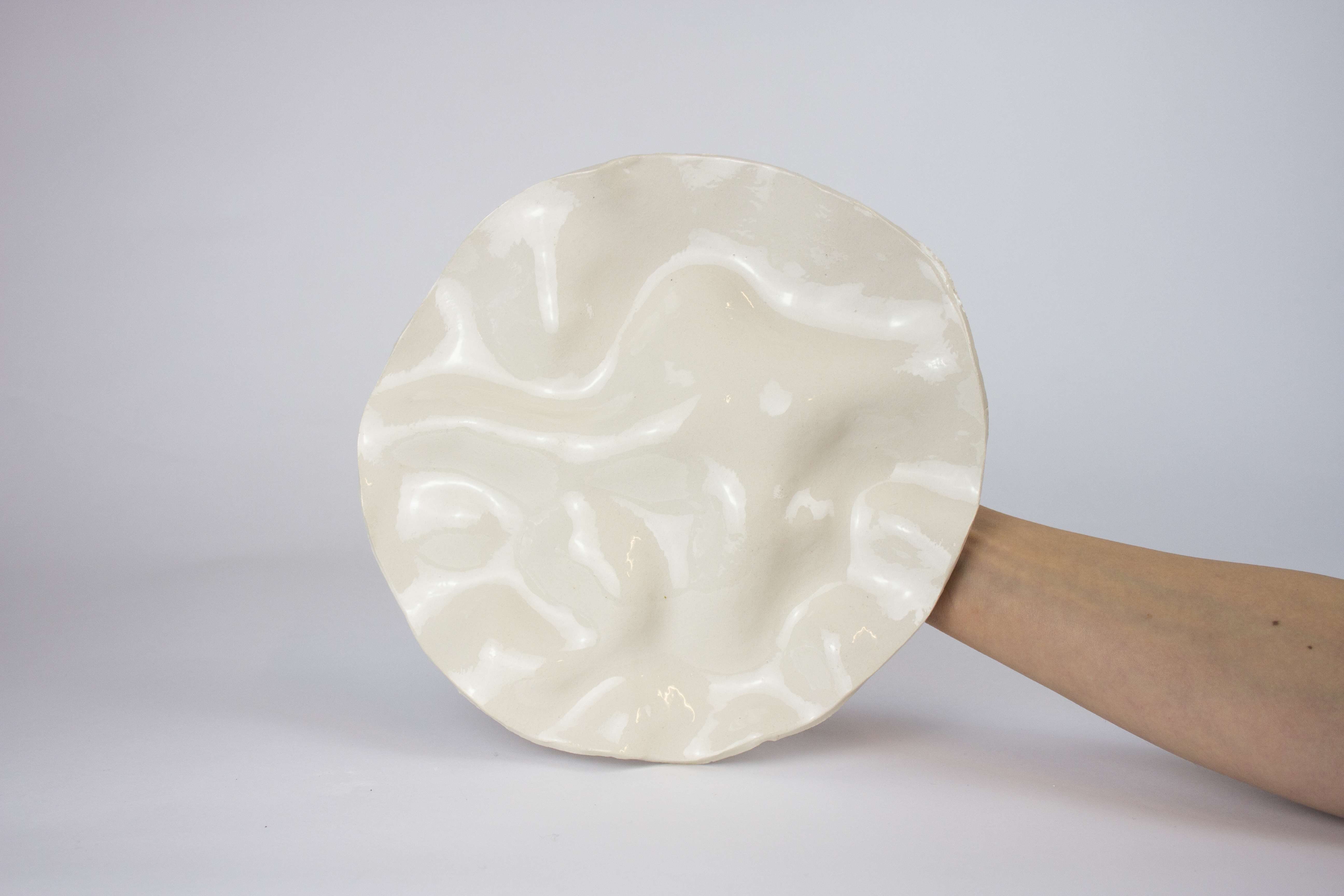 This series of ceramic sculptures was supposed to be used as plates during a conceptual dinner. Then I started experimenting by treating them more like handheld sculptures, as a way to research form and behaviour. Finally, this research became a project of its own where I want to find out how I can make plates that will always fit in my hand. The idea is that the fingertips will slide in the curvatures of the surface finding their way naturally.
