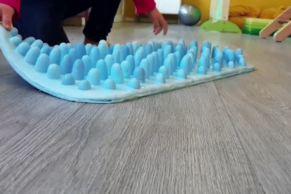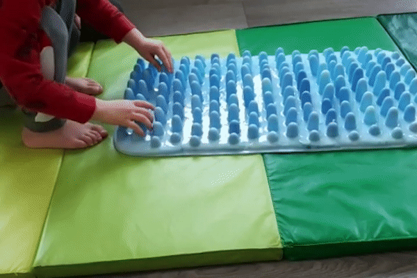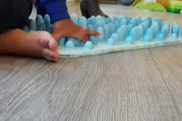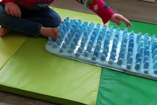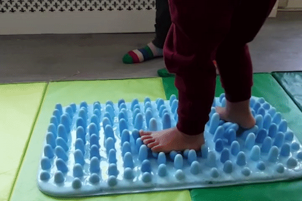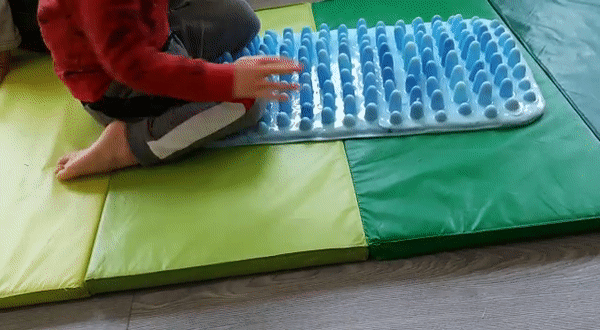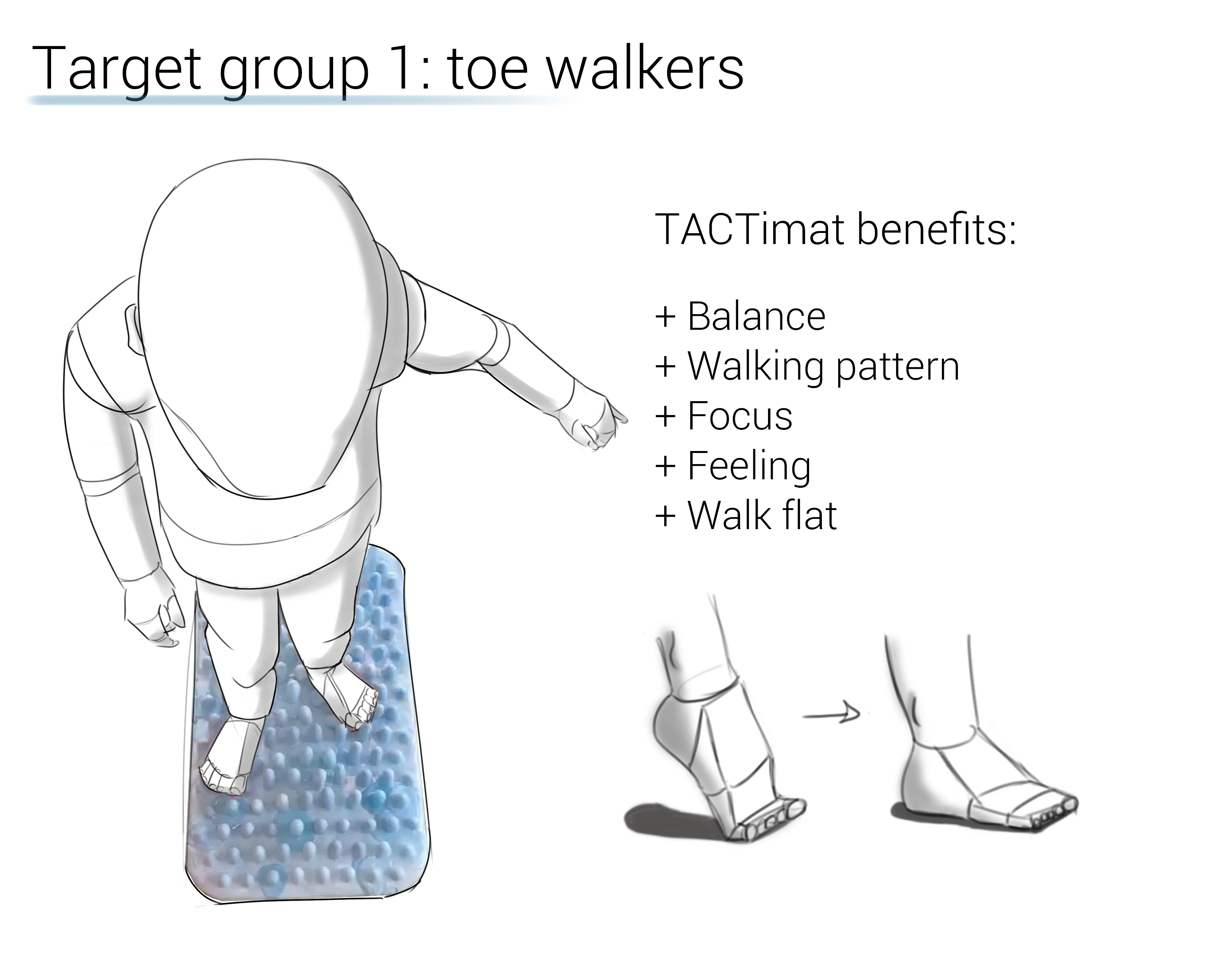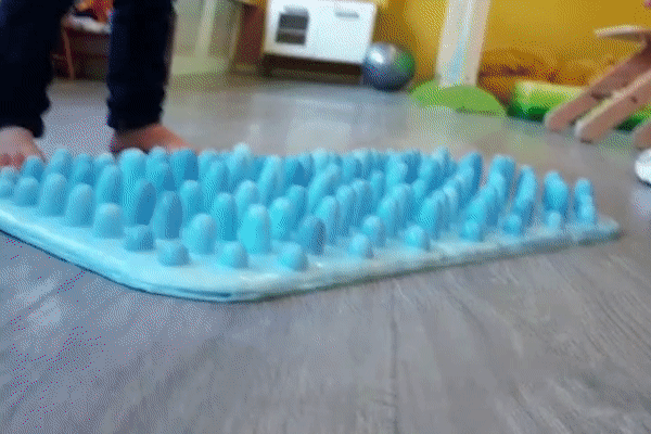 The most evident validation came from three children with a cognitive disability or ASD, who were first walking high on their toes – an ASD behaviour indicating insufficient stimulation. Once they engaged with the TACTimat, they began walking on the complete sole of their foot on the surface. Additionally, balance-deficient children happily trained their balance and a girl with a clubfoot trained her proprioception. Taller buttons, sharper tips, and a higher density of buttons seem to provide more intense stimuli.